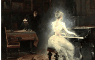 “Spirit” by George Roux (above) is an almost whimsical rendering of turn-of-the-century ideas about “phantasmagoria,” that is, disembodied spirits and ghosts. The glowing spirit of a beautiful young woman, her dress trailing into transparency, runs [...]