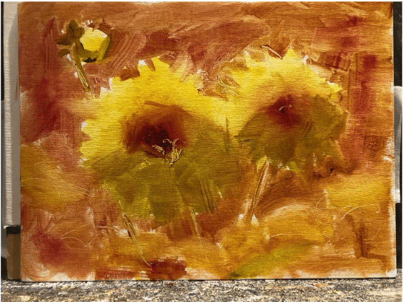 Over my many years of painting flowers and teaching, I have found several tips that help me to capture the essence of flowers, in a painterly way, without getting lost in every last petal. I hope sharing these approaches helps you in your flower painting efforts. My photos depict an oil painting example, but these tips are relevant for any medium and can apply to simplifying other complex subjects as well.