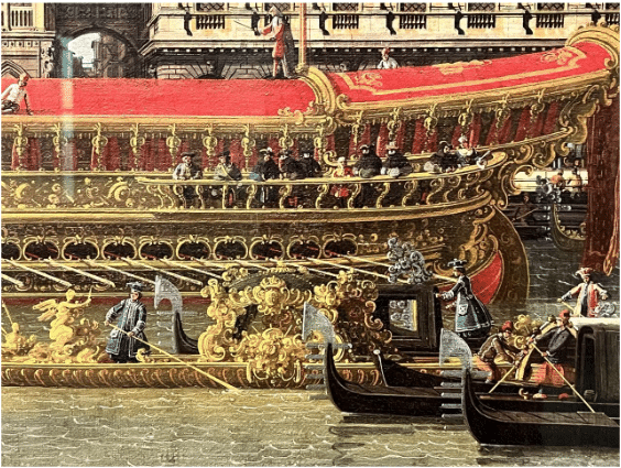 Detail of the ship “Bucintoro” as painted by Canaletto in “The Bucintoro on Ascension Day, Docked in Front of the Doge’s Palace,” oil on canvas, 1775.