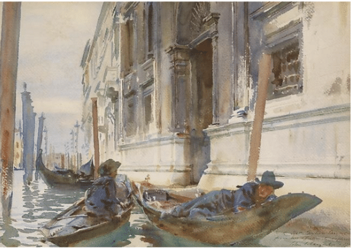 John Singer Sargent, Gondoliers’ Siesta, c. 1904. Watercolor on paper, 14 x 20 inches