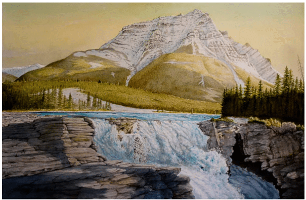 I also wanted the painting to give a sense of depth and the enormity of the mountains. So, I designed the composition to achieve these desired results by making the mountains the dominant feature in the painting with smaller areas for the sky and foreground.