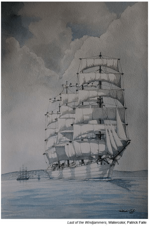 Current exhibition rules state that photo references used in a painting must be taken by the artist to be considered original artwork. There are some instances where this is impossible for me. My painting “Last of the Windjammers,” for example, is a historical painting and uses historical photo reference.
