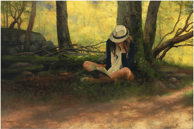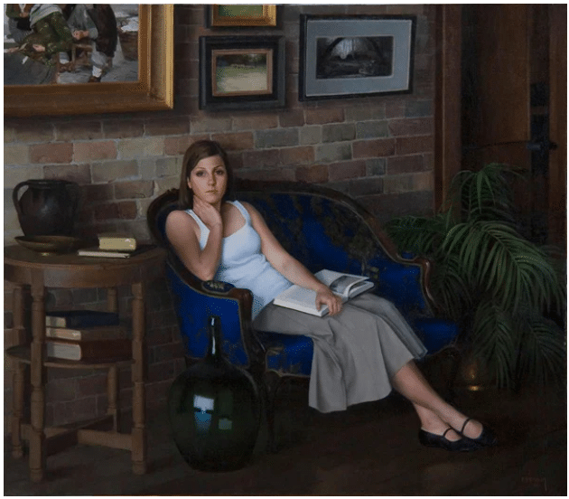 Every painting starts with what I think is a good idea (they aren’t always good ideas). I always have a specific model in mind, and various locations that would offer the proper settings for my idea. I also think about costuming and different variations of what I’d like the model(s) to wear and how that fits the general concept. We then spend a few hours taking reference photos in several locations, with several costume changes and several poses.