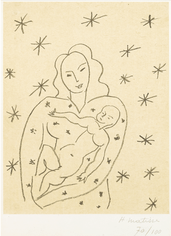Henri Matisse, Vierge et Enfant sur fond etoile, lithograph, 1951