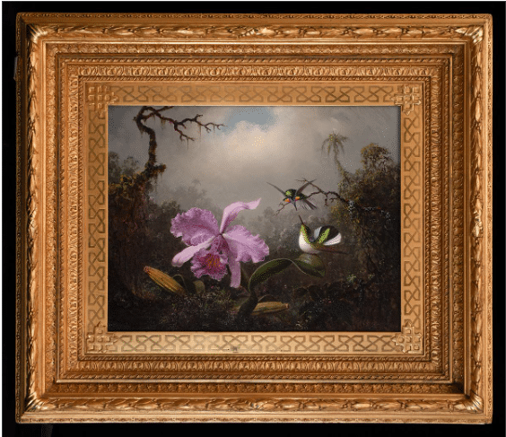 Heade was fascinated with tropical flora and fauna—studying and painting hummingbirds in Brazil between 1863 and 1865 and making subsequent trips to Nicaragua in 1866 and Colombia, Panama, and Jamaica in 1870. It was not until 1870 Heade considered also focusing on the flowers that he witnessed on these travels. The present work is one of the first instances where the artist painted the two elements of orchids and hummingbirds together—a compositional pairing today considered both the highpoint of Heade’s artistic achievements and an icon of American Art history.