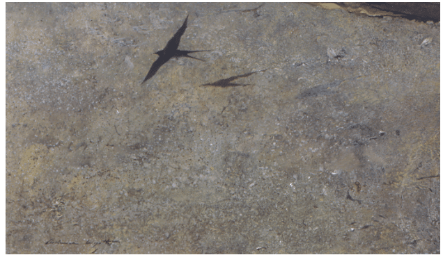 Detail of Wyeth’s “Spindrift” showing the sand texture and the silhouette of the bird and its shadow.