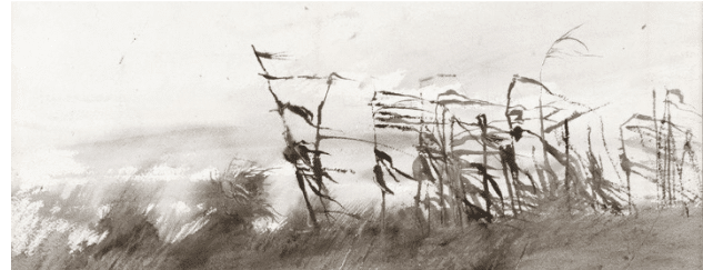 Wyeth’s watercolor November First takes tattered cornstalks swaying in the wind and raises them to the level of visual poetry. A close reading of November First yields clues to how that happens and reveals something about the “story,” albeit untold, that make it a great painting.