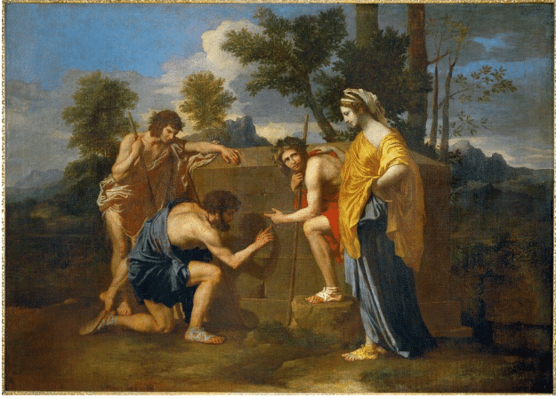 In the famous painting “Et in Arcadia Ego” by post-Renaissance French master Nicolas Poussin, classical-era shepherds and a maiden gather about the ruins of an ancient tomb. The inscription in the stone the figures are pointing, reads (per the title) “Et in Arcadia Ego,” a Latin phrase that here suggests the inevitability of mortality and the long passage of historical time amid the fleeting nature of life.