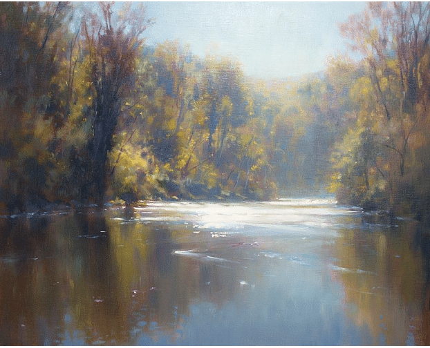 John MacDonald, Morning on the Hoosac, oil on linen, 24×36 in. John MacDonald teaches his poetic approach to landscape painting in several videos, including the bestselling video “Dynamic Landscapes”