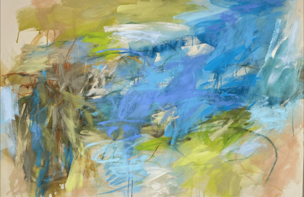 Debora Stewart, Earth Blues 1, acrylic on canvas, 40 x 60 x 1.5 inches