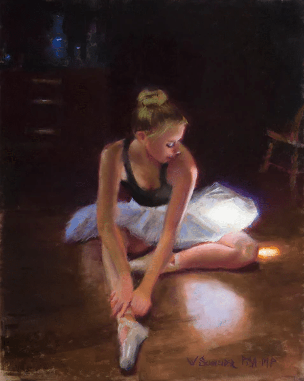 Oil and pastel painter William Schneider credits several sources for his work today. He’s taken workshops with some of the world’s best artists and has devoted hours to copying realist masters like Nicolai Fechin. His epiphany with design came after four intense days of study at an exhibition of the works of J.W. Waterhouse in Montreal. His efforts have been noticed. He has been awarded with Master Signature status in Oil Painters of America (OPA), and the Pastel Society of America has recognized him as a Master Pastelist, IAPS (The International Association of Pastel Societies) has named him to the Masters’ Circle, and AIS has made him a Master Signature Member (AISM).