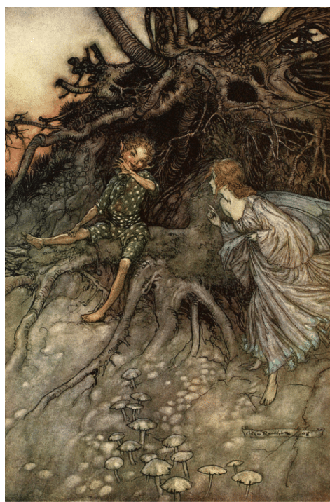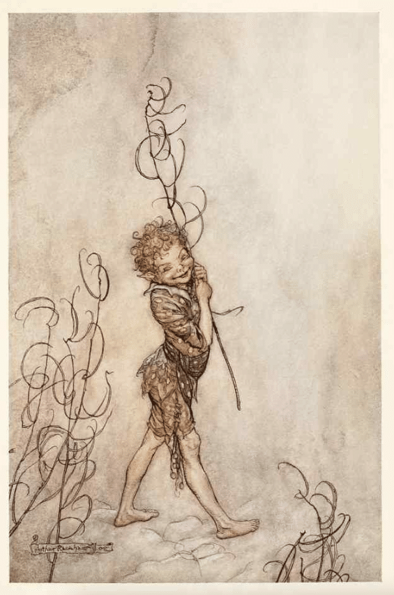 An illustration of Puck by Arthur Rackham, an artist who worked during the “Golden Age” of British book illustration at the turn of the twentieth century.
