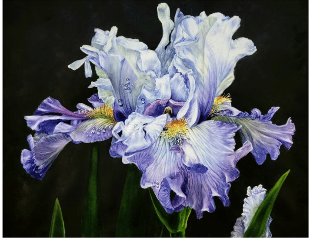 Soon Y. Warren, blue flag iris in watercolo