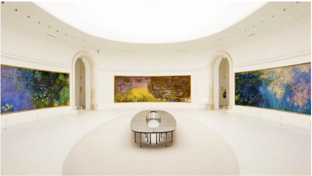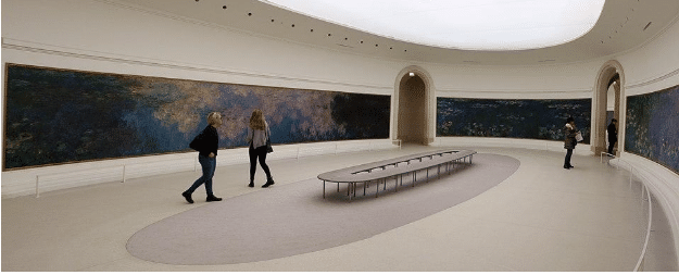 The L’Orangie’s two oval rooms with rounded walls contain huge decorative panels inspired by the water garden Monet created in his home in Giverny. This project, gifted to the nation to celebrate the coming of peace after WW I, surely constitutes his greatest achievement as a painter.