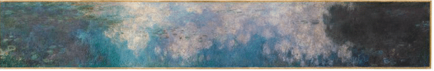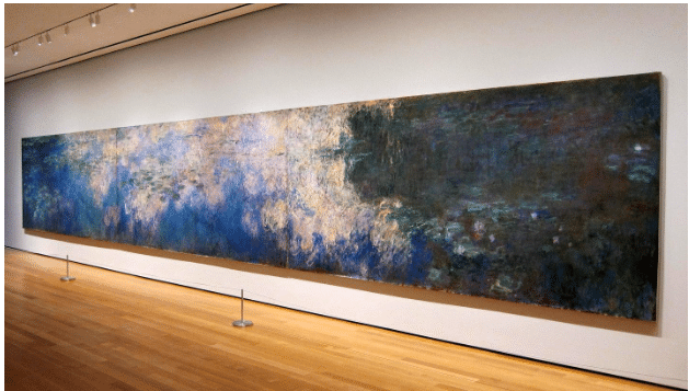 Claude Monet, “Reflections of Clouds on the Water-Lily Pond,” c. 1920, 200 × 1276 cm (78.74 × 502.36 in), oil on canvas, Museum of Modern Art, New York City.