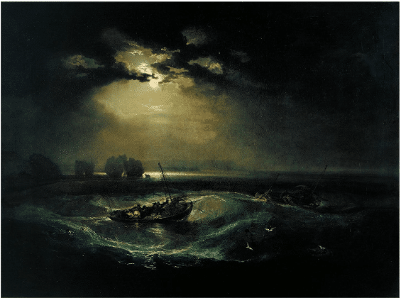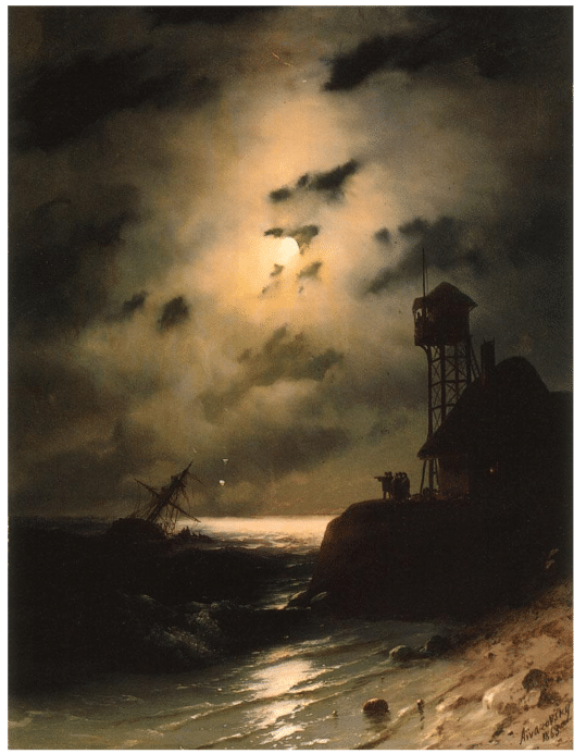 Ivan Aivazovsky, Moonlight Seascape with Shipwreck, ca. 1832, private collection. Wikimedia Commons.