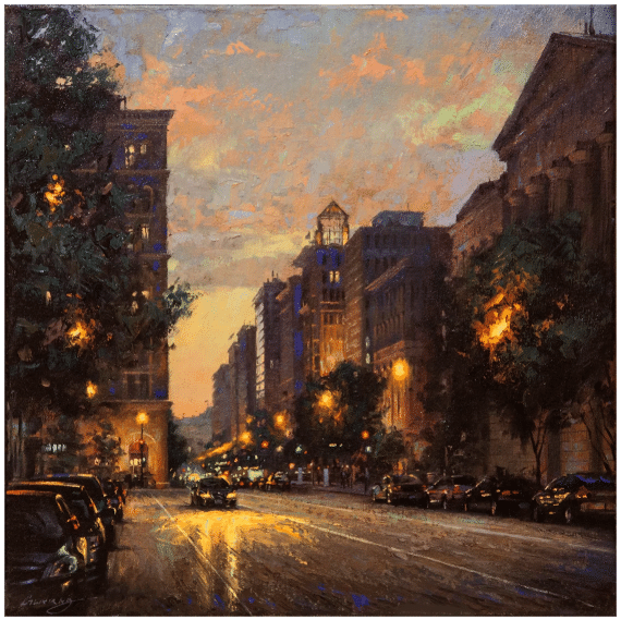 Gavin Glakas, 7th and F Streets, oil on linen, about 20×20 in.