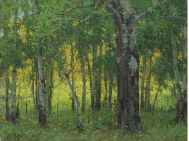 Clyde Aspevig, “Aspen Grove,” oil, 12 in. x 16 in. Clyde Aspevig teaches his unique oil painting approach and technique in his video, ASPEVIG