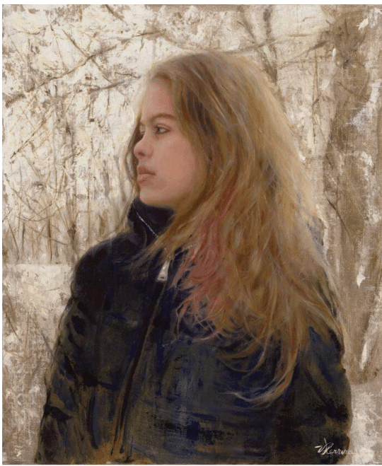 Before she decided to become a painter, 35 years ago, Herrera wanted to be a photojournalist. She still admires photographers like W. Eugene Smith, Dorothea Lange, and Mary Ellen Marks. “I was so attracted to the idea of capturing that perfect instant that can tell a whole story,” she remembers. Although her parents particularly discouraged her from pursuing a career as a war photographer, she has been able to satisfy — through the painting of portraits — that early desire to capture people’s meaningful expressions, ones that serve as portals to their whole story. To achieve this goal, she studied full-time for four years at New York City’s Grand Central Atelier under its founder, Jacob Collins. “It was a rigorous and difficult training that required many sacrifices,” she notes, “but I would not exchange it for anything.”