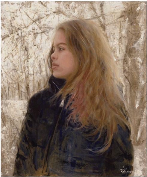 Before she decided to become a painter, 35 years ago, Herrera wanted to be a photojournalist. She still admires photographers like W. Eugene Smith, Dorothea Lange, and Mary Ellen Marks. “I was so attracted to the idea of capturing that perfect instant that can tell a whole story,” she remembers. Although her parents particularly discouraged her from pursuing a career as a war photographer, she has been able to satisfy — through the painting of portraits — that early desire to capture people’s meaningful expressions, ones that serve as portals to their whole story. To achieve this goal, she studied full-time for four years at New York City’s Grand Central Atelier under its founder, Jacob Collins. “It was a rigorous and difficult training that required many sacrifices,” she notes, “but I would not exchange it for anything.”