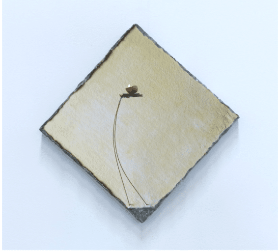 While the artist continues to incorporate sculptural elements made of organic matter such as salt, feathers, clover petals, and seashells, he is now using raw pigment powders and tempera in startlingly saturated colors. The luminous canvases include fields of intense primary yellows, reds, blues, and whites with varying surfaces and textures that call to mind nature in the form of sunlight, fire, and a night sky, making this exhibition a meditation on the transience and the delicate beauty of everyday life.