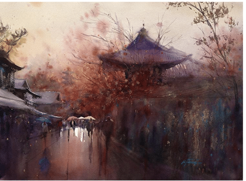 Plein Air watercolorist Keiko Tanabe (“Storytelling with Watercolor“ and “Painting Sunlight“) was born in Kyoto, Japan. As a child growing up in an art-loving family, she always enjoyed drawing and painting and won many awards in children’s art contests. However, she didn’t study art in school; rather, she earned a B.A. in intercultural communication and an M.A. in international education and worked in international relations for most of her career. Her work has allowed her to travel extensively in Europe, Asia, and North America. In 2018 and 2019, she was invited to be a faculty member for the Plein Air Convention & Expo<<https://pleinairconvention.com , the world’s largest plein-air painting event. Keiko currently lives in San Diego, California.