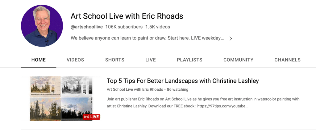 If you are serious about giving your art business a boost, browse through Eric Rhoads’ free videos on making money as an artist – part of his series of interviews and features on his YouTube channel, Art School Live with Eric Rhoads.