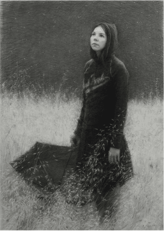 Finishing a drawing is more about wisdom than it is about technique. A drawing will slowly come into focus the more it is worked on and present its own very unique combination of problems and potential solutions. It becomes more than merely a portrayal of an image; it is also a record of the experiences, feelings, intentions, thoughts, and motivations of the artist who created it. This may sound arcane, and in a way it is. It is at once simple and complex. On the one hand you have only to “be yourself ” and practice your craft “honestly.” Then you find that “being yourself ” is not as easy as it sounds, and that practicing your craft honestly becomes increasingly difficult and complex the deeper you delve into the craft. This is why I rarely speak of “finishing a piece” in terms of following a few predictable steps. Every piece is different, every experience unique, and so the artist’s response should not be borrowed, perfunctory, or unnatural.