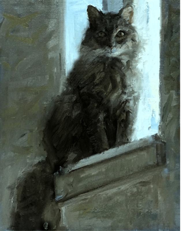Howard Friedlander, “Rocky at the Window,” oil, 16 x 20 in.