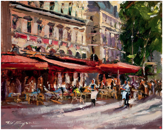 Michelle Byrne, “Saint-Michel Café,” Oil on board, 8×10 in.