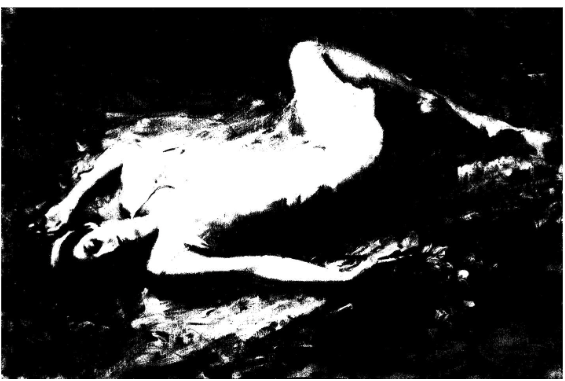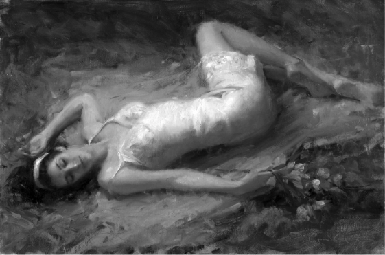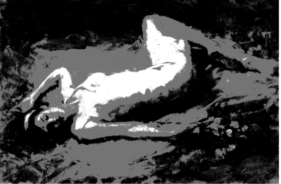 In this example, I reduced an image of my painting Repose down to two values only. Notice the tight grouping of these values—all the lights are grouped together in the center of the painting. It makes for some interesting abstract shapes, but I feel it is well-balanced.