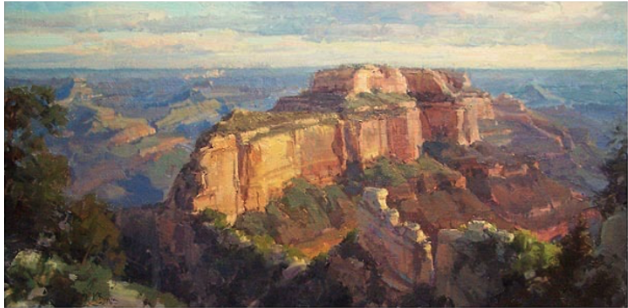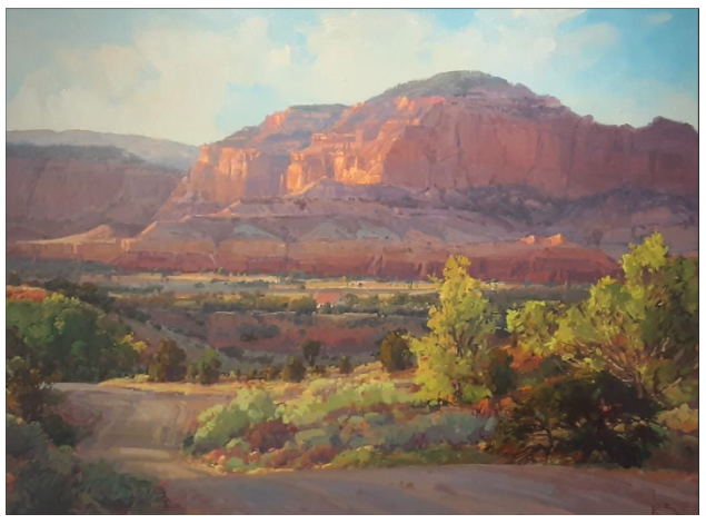 She paints in France as well, and though she still paints plenty of rural scenery, over the years those red rock paintings, which she’s now doing on a larger scale (e.g. 36 x 48 in.), have found a very eager audience. The common factor through it all is her sensitive and deliberate treatment of compelling effects of light.