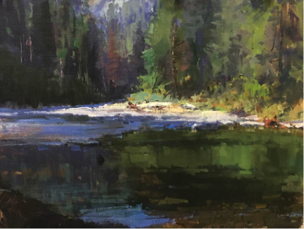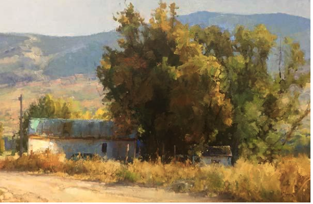 She started with the familiar rural landscapes of her childhood, and over time she discovered the magic of modern realist landscapists such as John Carlson, Scott Christensen, and Russian masters like Vasily Polenov. She studied with artists near and far, especially in the Taos and Salt Lake City areas, on and off for 20 years.