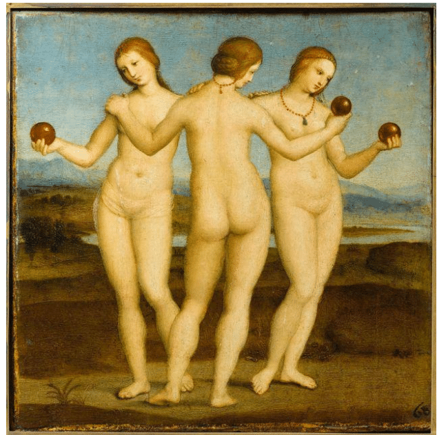 One of Raphael’s most famous works, The Three Graces, 1504-1505, Conti of Chantilly museum.
