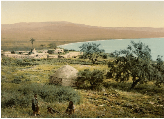 Photograph taken c. 1900 of al-Majdal, a village standing among the ruins of Magdala, Mary Magdalene’s hometown
