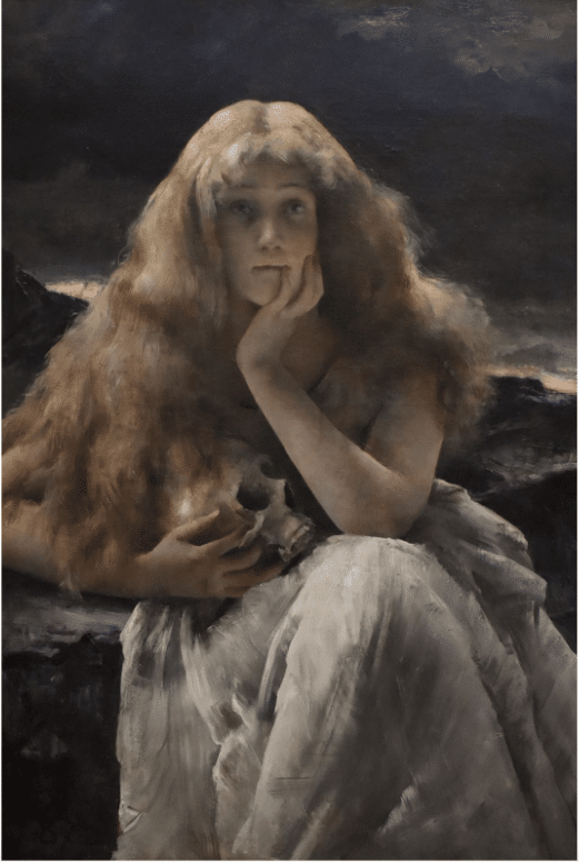 Sarah Bernhardt as Maria Magdalena (1887) by Alfred Stevens, oil, 44 in × 30.4 in