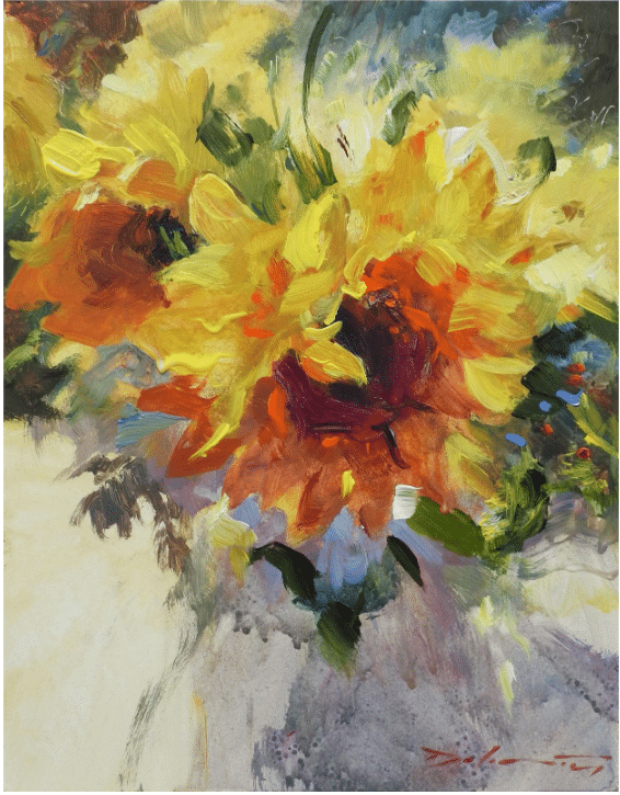 Rick Delanty, Sunflowers, Sunlight for Ukraine, Acrylic, 12 x 9 in., 2022. Winner, “Best Acrylic,” 12th Annual Plein Air Salon.