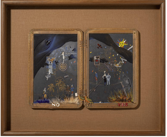 Maureen McCabe taught art for 40 years at Connecticut College in New London, but now her retrospective, “Fate and Magic: The Art of Maureen McCabe,” is on view at another educational institution, the University of Connecticut’s William Benton Museum of Art. Through her assemblages and installations, this artist has returned repeatedly to the themes of fate and magic, creating playful yet carefully composed works that weave imagery from ancient and contemporary cultures, always informed by folklore, literature, spiritualism, and myth. Game boards, tarot cards, dice, birds, fortune tellers, and constellations populate McCabe’s works, prompting age-old questions about control over our power to shape our own destinies.