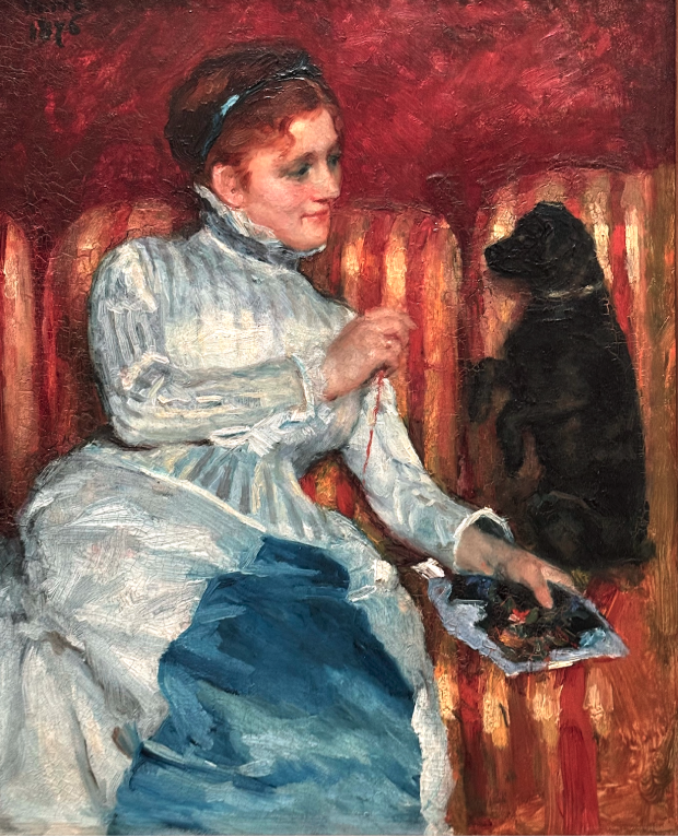 Woman on a Striped Sofa with a Dog,” 1876, Oil on panel. Fogg Museum, Harvard.
