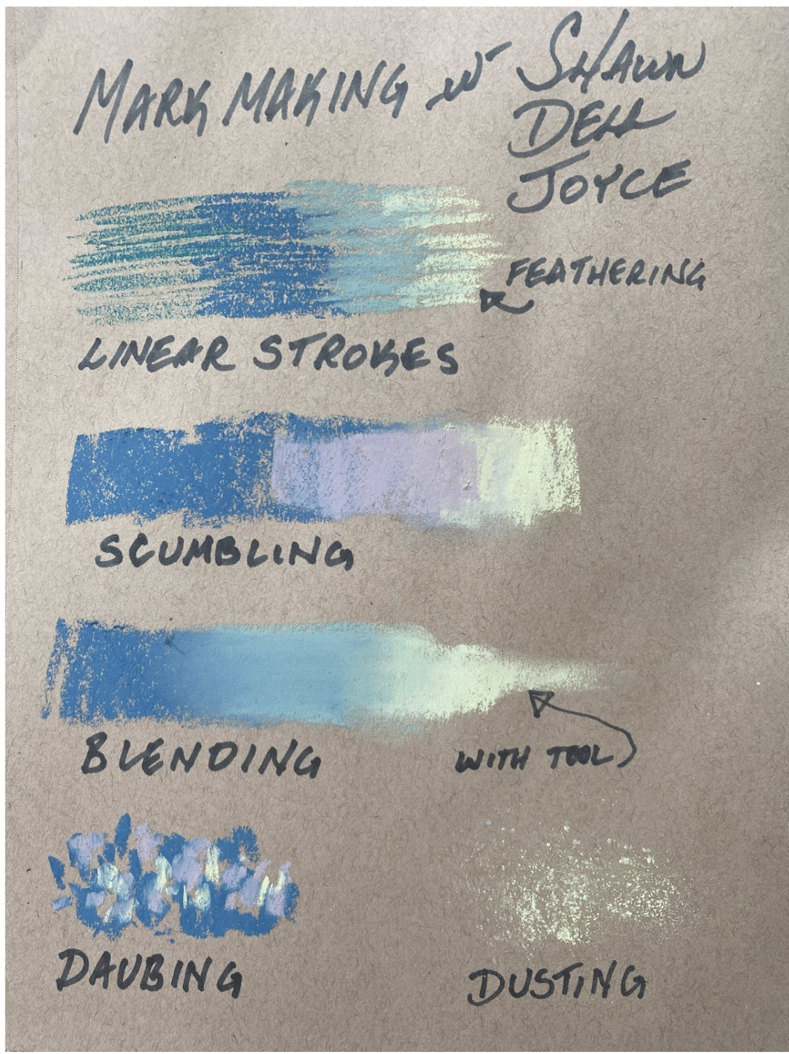 Shawn Dell Joyce, who founded the Wallkill River School of Art, led us through her mark-making and pastel application techniques, including a handy tool she uses to apply the rule of thirds to her compositions. For Pastel Live, Shawn painted a near-crashing wave coming onto the beach.