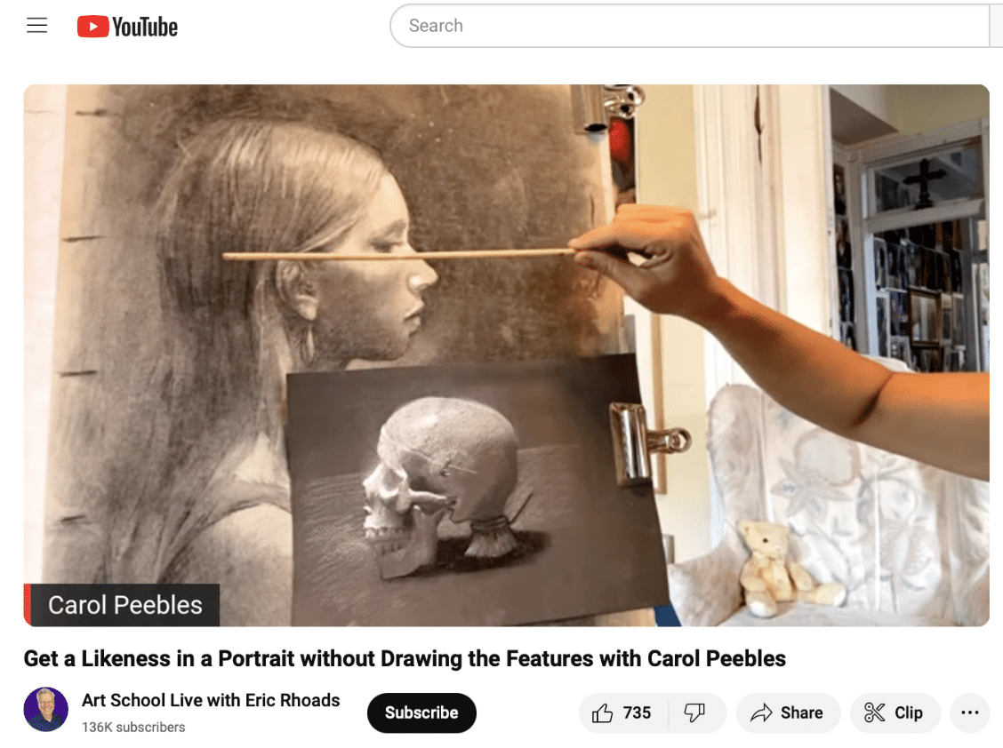 Carol Peebles demonstrates technical aspects of her pastel poertrait painting practiced in tis free video.