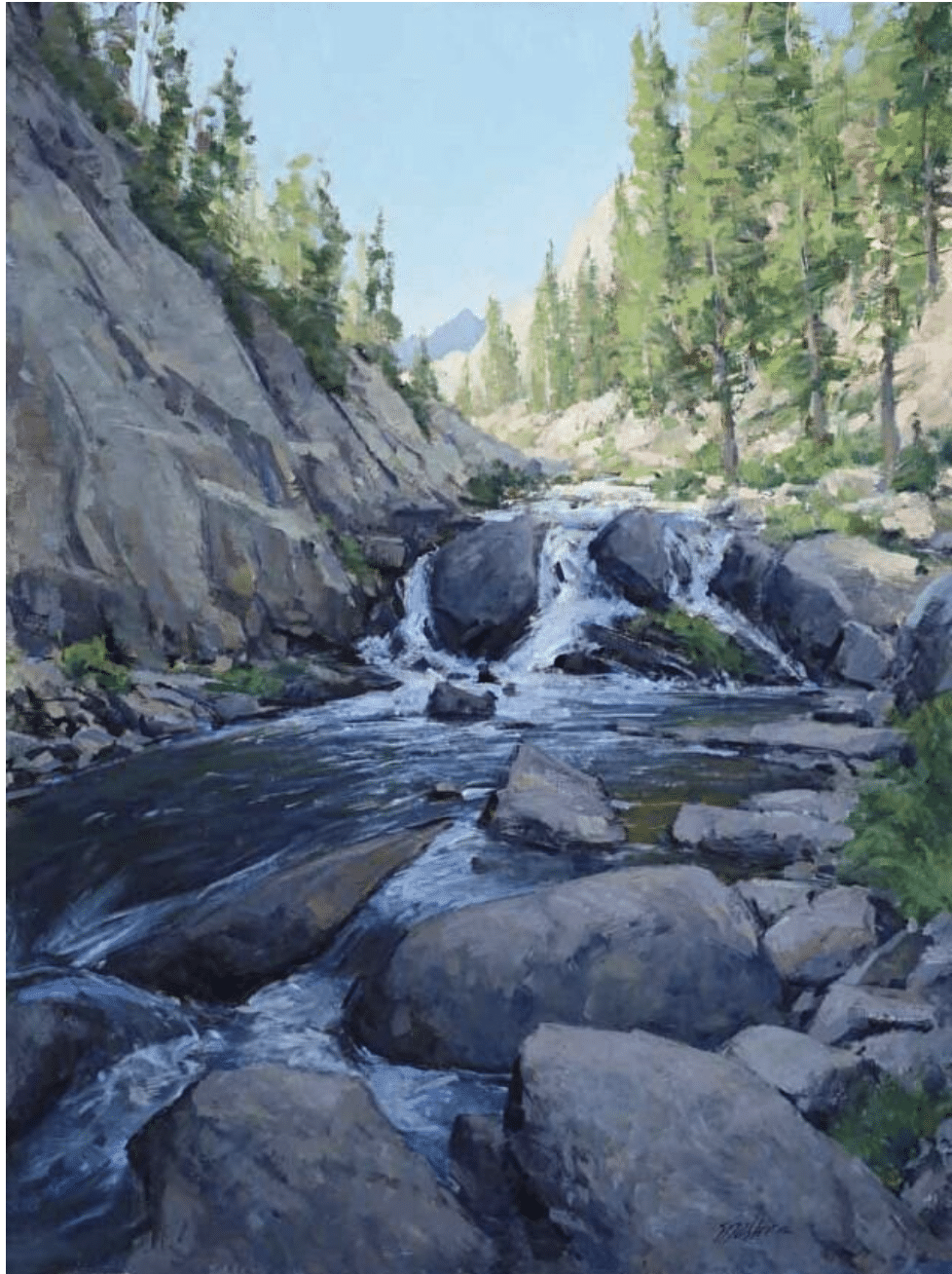 You could think of Tim Deibler’s style as excelling in capturing the freshness and energy of nature as the light changes. There’s a strong sense of movement in his paintings, even in solid masses, where paint handling picks out the landscape’s beauty and the surface washes over you in cascading rhythms.