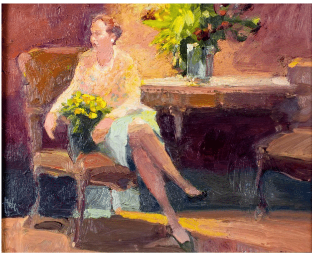 Ken Auster, “Flowers from a Friend,” oil on canvas, 16×20 in.