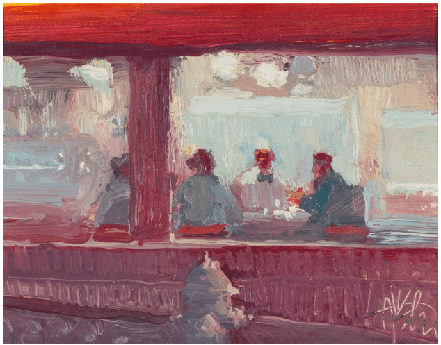 Ken Auster, “Rocket Man,” oil on board, 6×8 in. HOPPER MEETS THE TWILIGHT ZONE!!