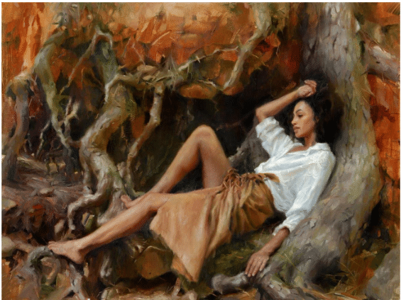 Says the judge: “I selected Natalie Hirschman’s ‘Deep Forest’ for second place due to its compelling composition and rich color palette. The harmonious integration of the figure within the intricate natural forms creates a captivating visual narrative, showcasing the artist’s skill in balancing figurative and natural elements.”