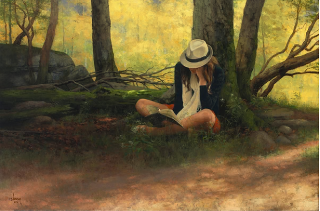 Every painting starts with what I think is a good idea (they aren’t always good ideas). I always have a specific model in mind, and various locations that would offer the proper settings for my idea. I also think about costuming and different variations of what I’d like the model(s) to wear and how that fits the general concept. We then spend a few hours taking reference photos in several locations, with several costume changes and several poses.