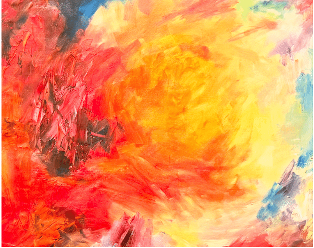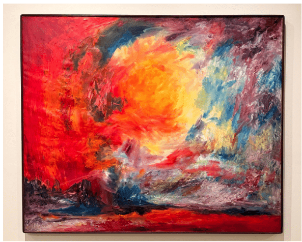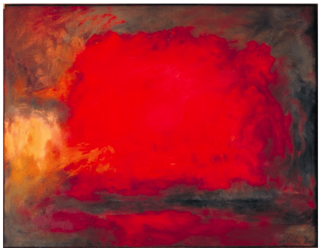 Detail of energetic brushwork in Jon Schueler’s “Red Snow Cloud and the Sun”