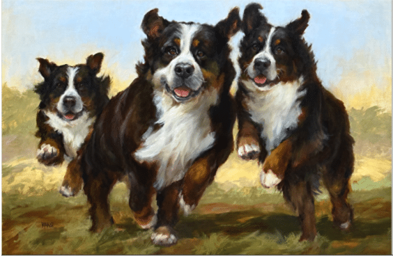 Johanne Mangi, “Berner Joy,” oil. Johanne teaches her specialty of dog portraits in oil in her video, The Fine Art of Painting Dog Portraits