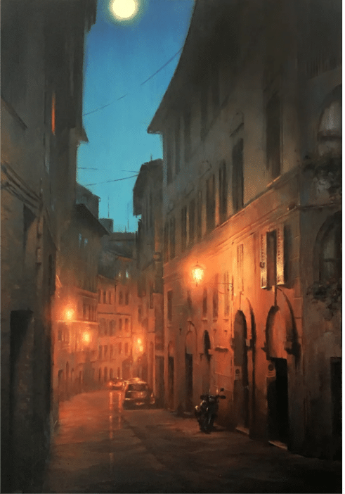 Gavin Glakas, “Alone in Sienna,” oil, 14 x 11 in. Known for “The Glow,” Gavin Glakas teaches his ability to capture atmospheric light in his video, Glow – Creating Depth, Atmosphere and Vibrant Sun