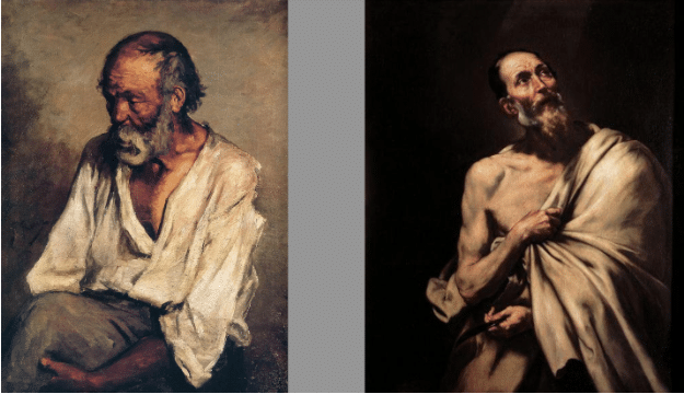 An early painting by Pablo Picasso, The Old Fisherman, 1895. RIGHT: Jusepe de Ribera, Saint Bartholomew, 1791.